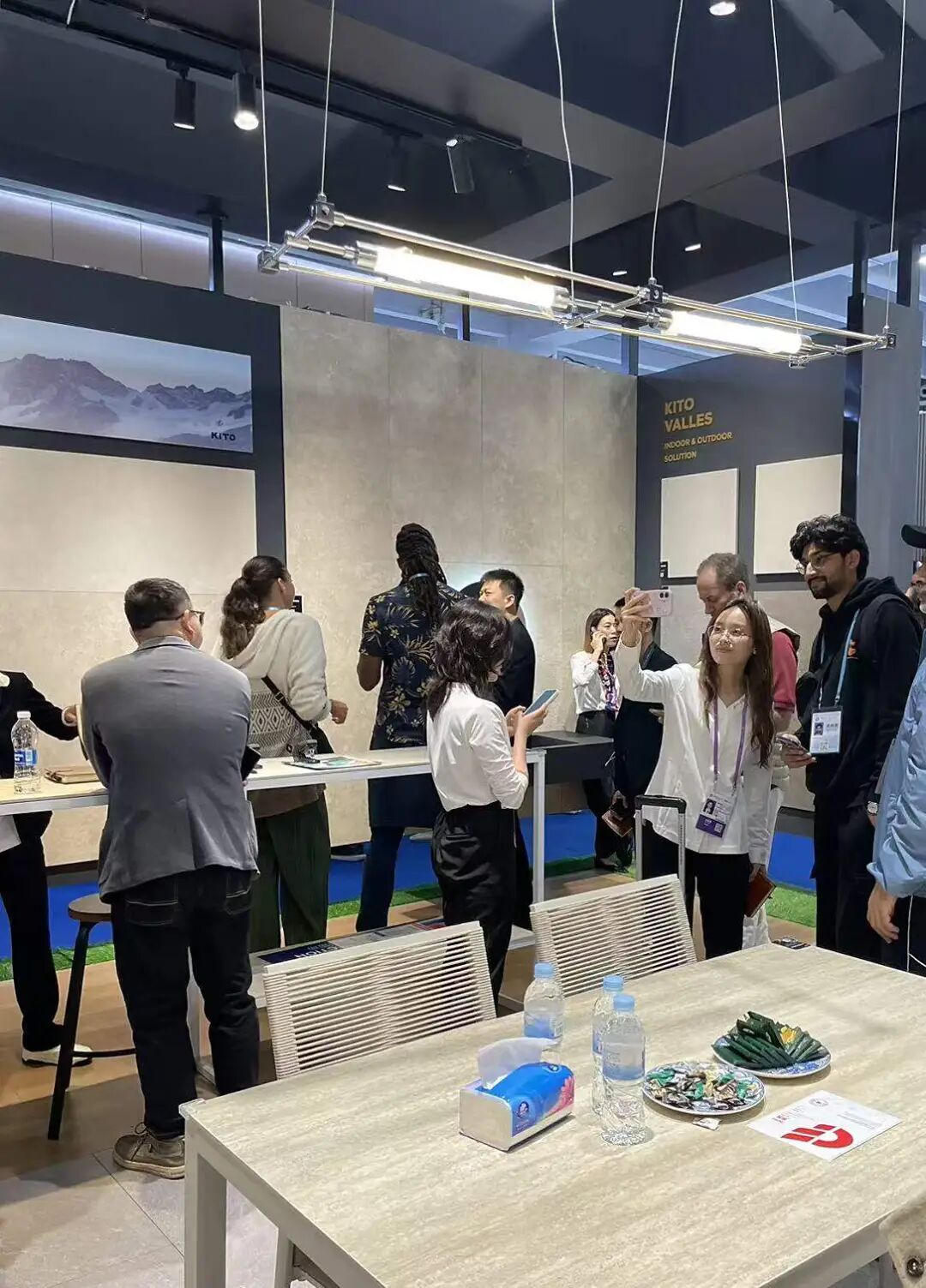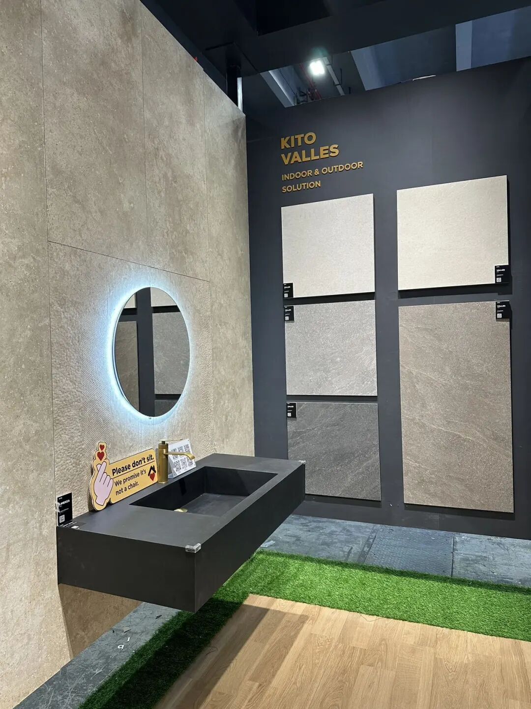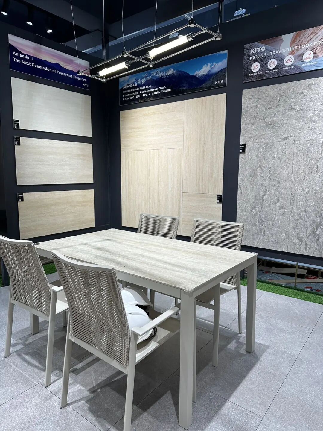 Un punto destacado fue el nuevo Travertino KITO de 600 x 1200 mm (Serie Kstone). Con tecnología patentada de vanguardia, captura la auténtica sensación visual y táctil del travertino natural, superándolo con creces en rendimiento y durabilidad.