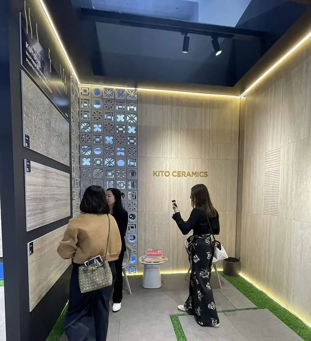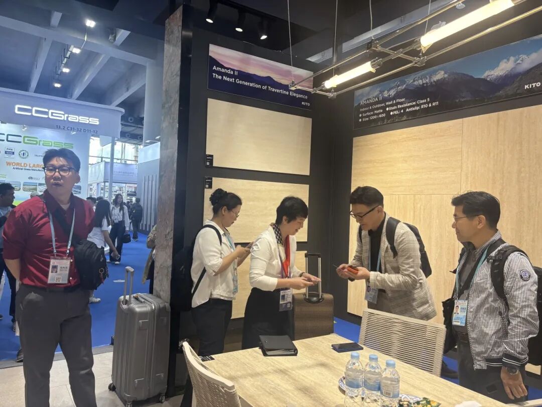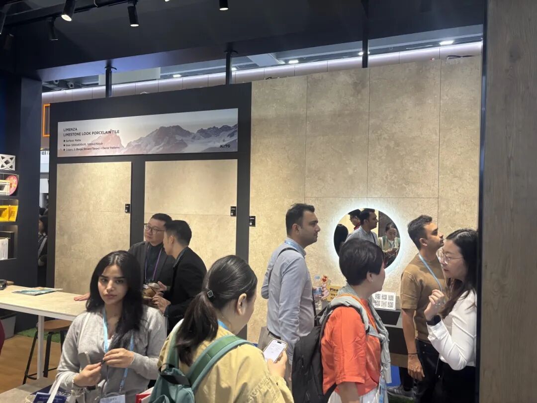 La exposición de KITO se centró en sus series más solicitadas, incluyendo travertino, imitación madera, hormigón y piedra sinterizada estética. Con patrones y texturas mejorados, estos productos demuestran una expresividad superior, ofreciendo a los usuarios baldosas estéticas más atractivas visualmente, de mayor calidad y con mayor personalidad, creando así una estética espacial más sofisticada.