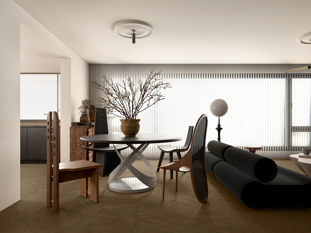 Inspirándose en el encanto artístico de las antiguas calles de Èze, Francia, las baldosas de madera de agar presentan vetas de madera naturalmente claras con una marcada textura entrelazada: visualmente dinámicas y artísticamente expresivas. Realzadas con intrincados motivos de nudos chinos tallados, crean una atmósfera rica en profundidad cultural.