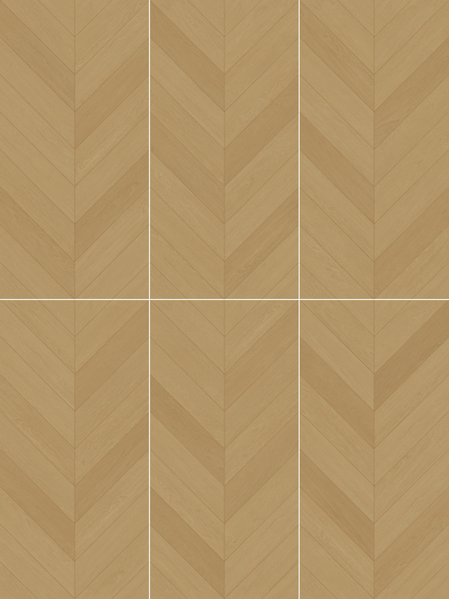 La suave textura de la lluvia brumosa se combina con cálidos tonos de madera, complementados por las singulares líneas rítmicas del patrón de espiga. La textura de la colección de azulejos con aspecto de madera de patrón de espiga es fina y natural, y con la adición de un acabado micromoldeado, la experiencia visual y táctil reproduce fielmente la veta de la madera auténtica.