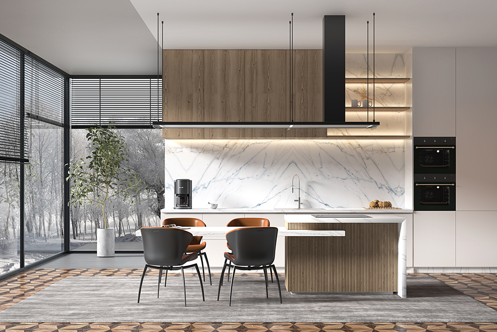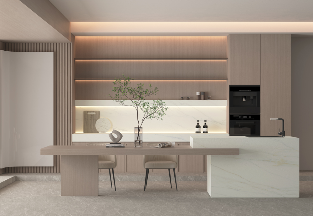 Colores contrastantes de vanguardia, diversos estilos. La combinación de un dorado noble y magnífico con un azul fresco y elegante crea un espacio sereno, lujoso y exquisito.