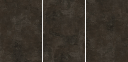 La textura finamente detallada de la baldosa comercial negra Oxide presenta variaciones ricas y aleatorias —moteado irregular, vetas fluidas y sutiles transiciones de luz y sombra— que evocan la cualidad desgastada y oxidada del metal.