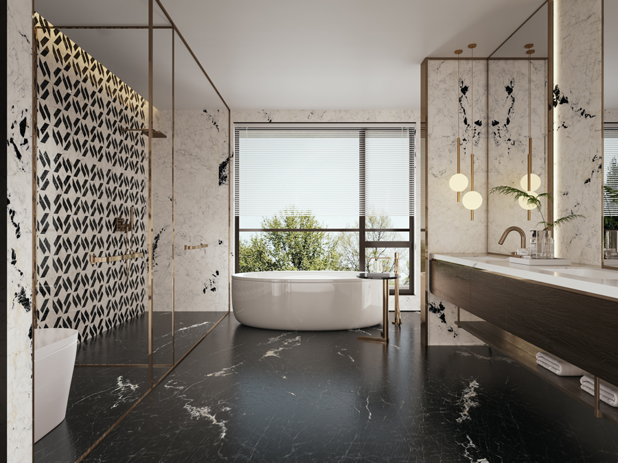 Disponible en blanco y negro, esta colección de azulejos de pared Paonazzetto se puede utilizar en aplicaciones a gran escala para crear una atmósfera serena de efecto tinta, o combinarse mediante patrones contrastantes para formar llamativos puntos focales visuales. Se adapta a la perfección a una gran variedad de estilos de diseño.