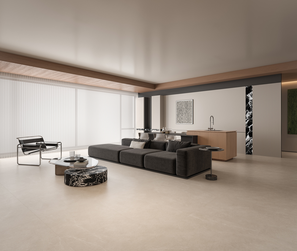 Disponible en dos tamaños —1500 × 750 mm y 800 × 800 mm— , esta colección ofrece una aplicación flexible y una perfecta coordinación. El tamaño coordinado garantiza una experiencia visual uniforme en todos los espacios.