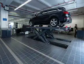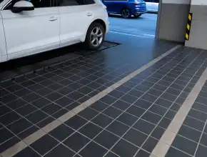 Muestras de piso: baldosas de madera KITO y baldosas esmaltadas